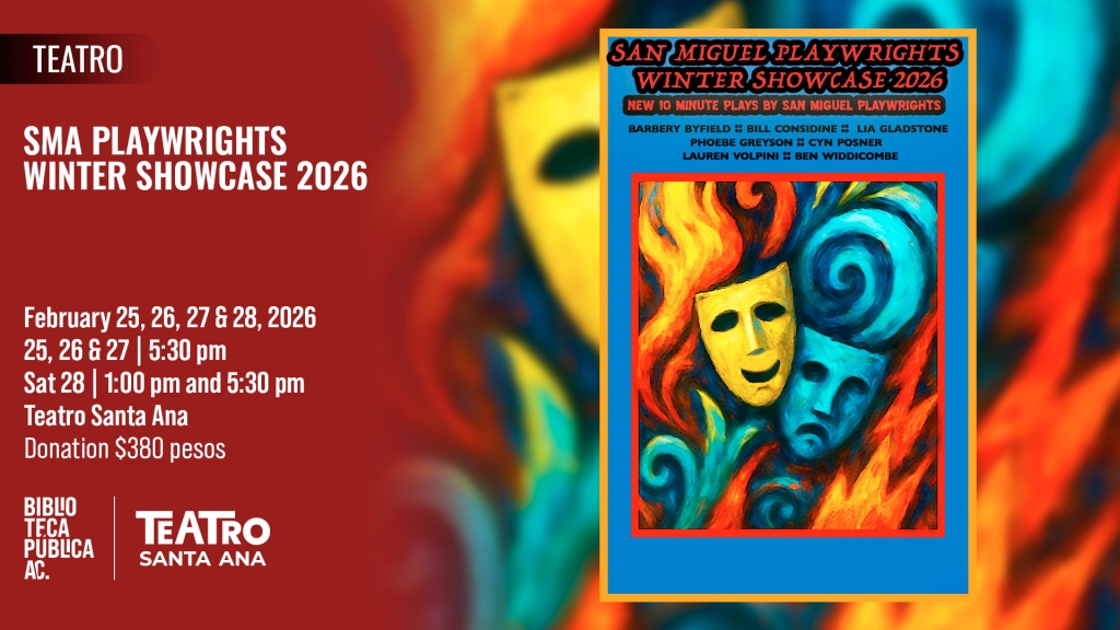 San Miguel Playwrights presents its annual SMA Playwrights Showcase 2026, an evening of seven short original plays which are a mix of comedies and dramas on themes relevant to our San Miguel audiences.